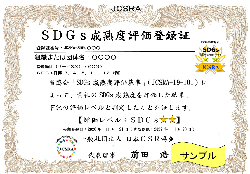 SDGs成熟度評価登録証発行:(現在8社ですが増加中)